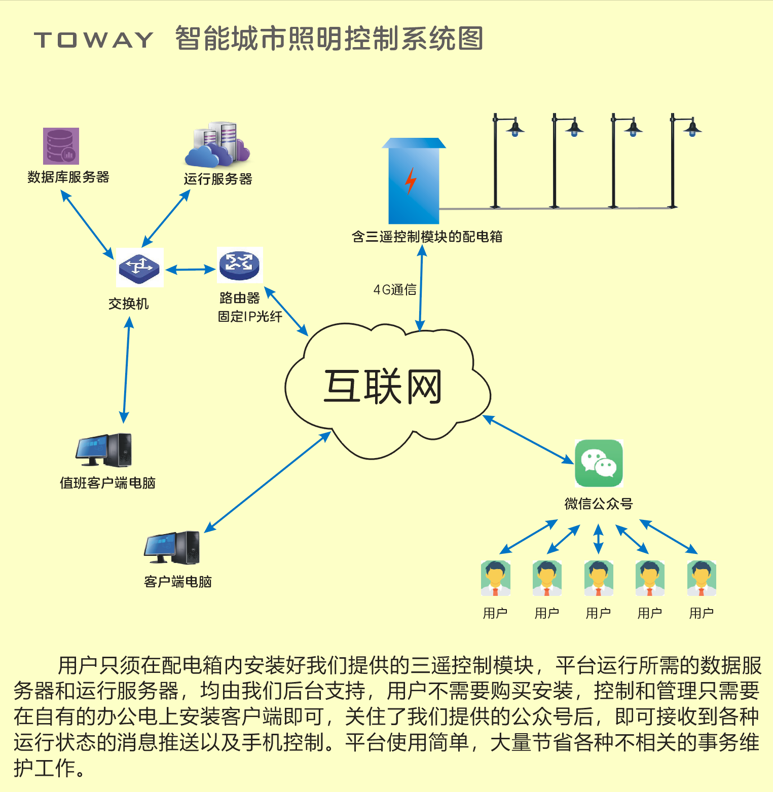 此方案對(duì)于一個(gè)縣城100臺(tái)路燈配電箱的體量,首年開支也只有三萬五千元,此后每年費(fèi)用是兩萬五,本方案最大的優(yōu)點(diǎn)就是費(fèi)用低廉,這筆費(fèi)用完全可以并入年度維護(hù)撥款中核銷。且不會(huì)有設(shè)備過保要重新采購(gòu)的問題出現(xiàn)。